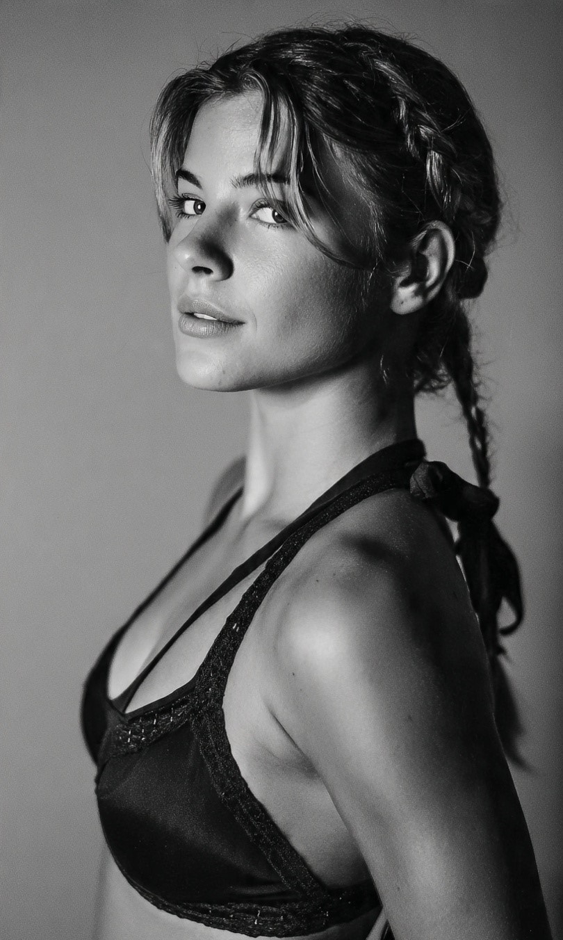 Minimal styling and neutral tones strip the image down to its essentials. With distractions removed, the subject’s expression, posture, and energy become the focal point. The photograph emphasizes authenticity over perfection, presenting confidence as something internal rather than performative.